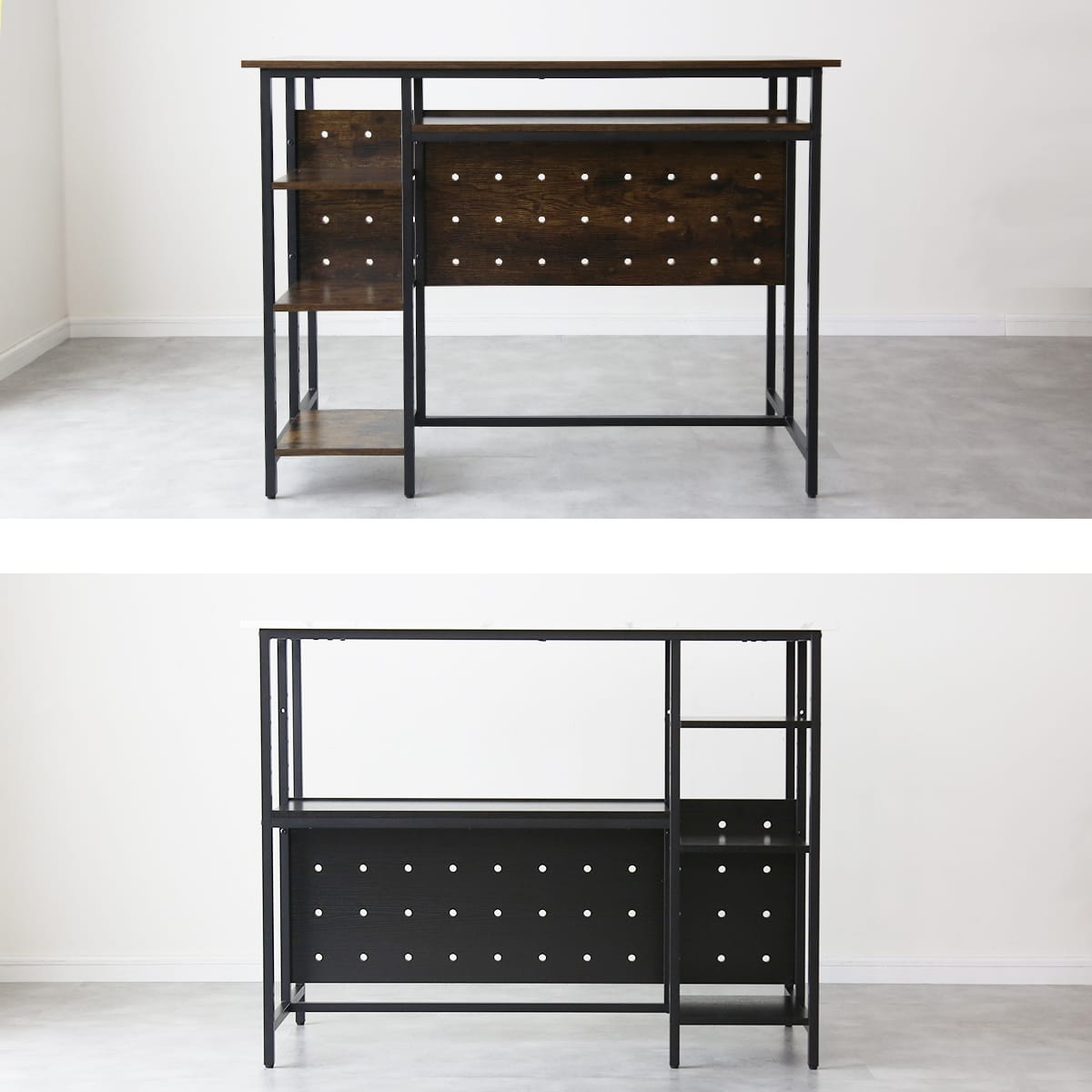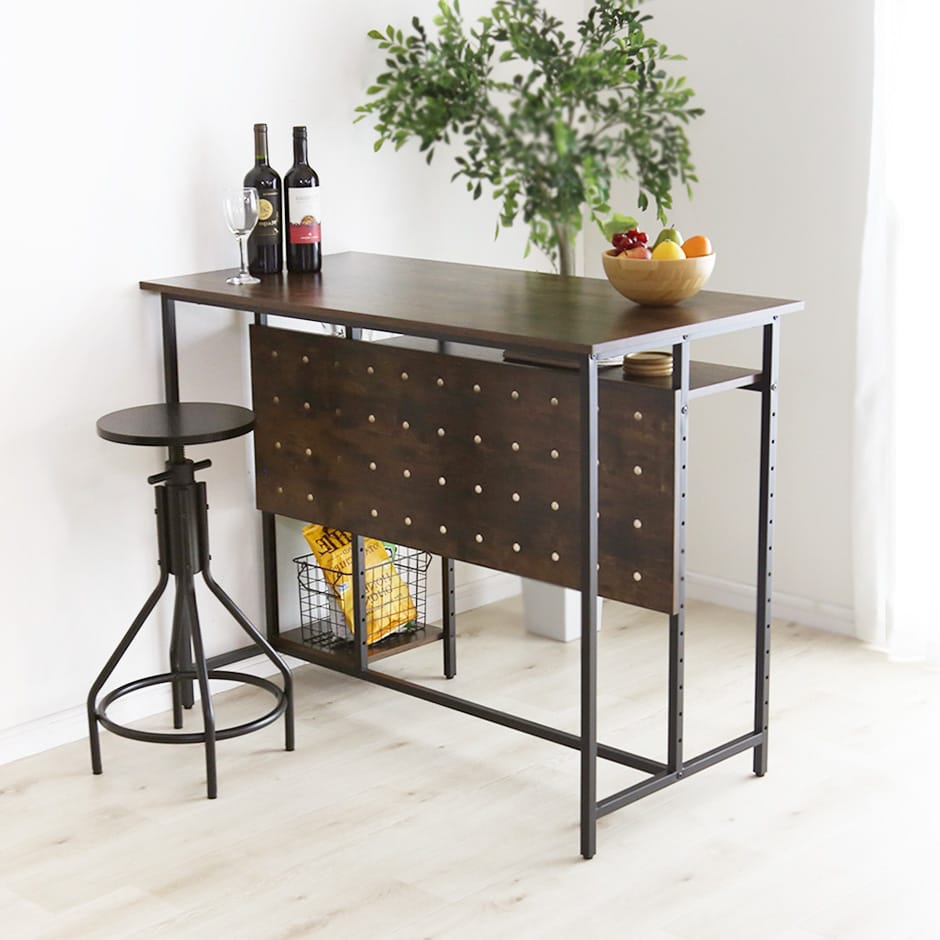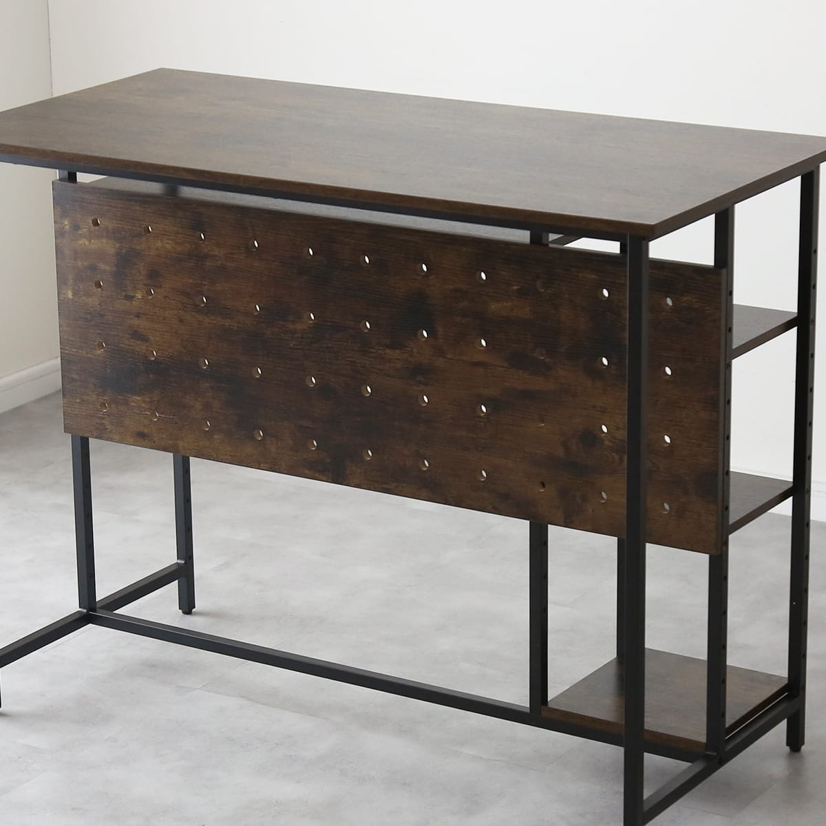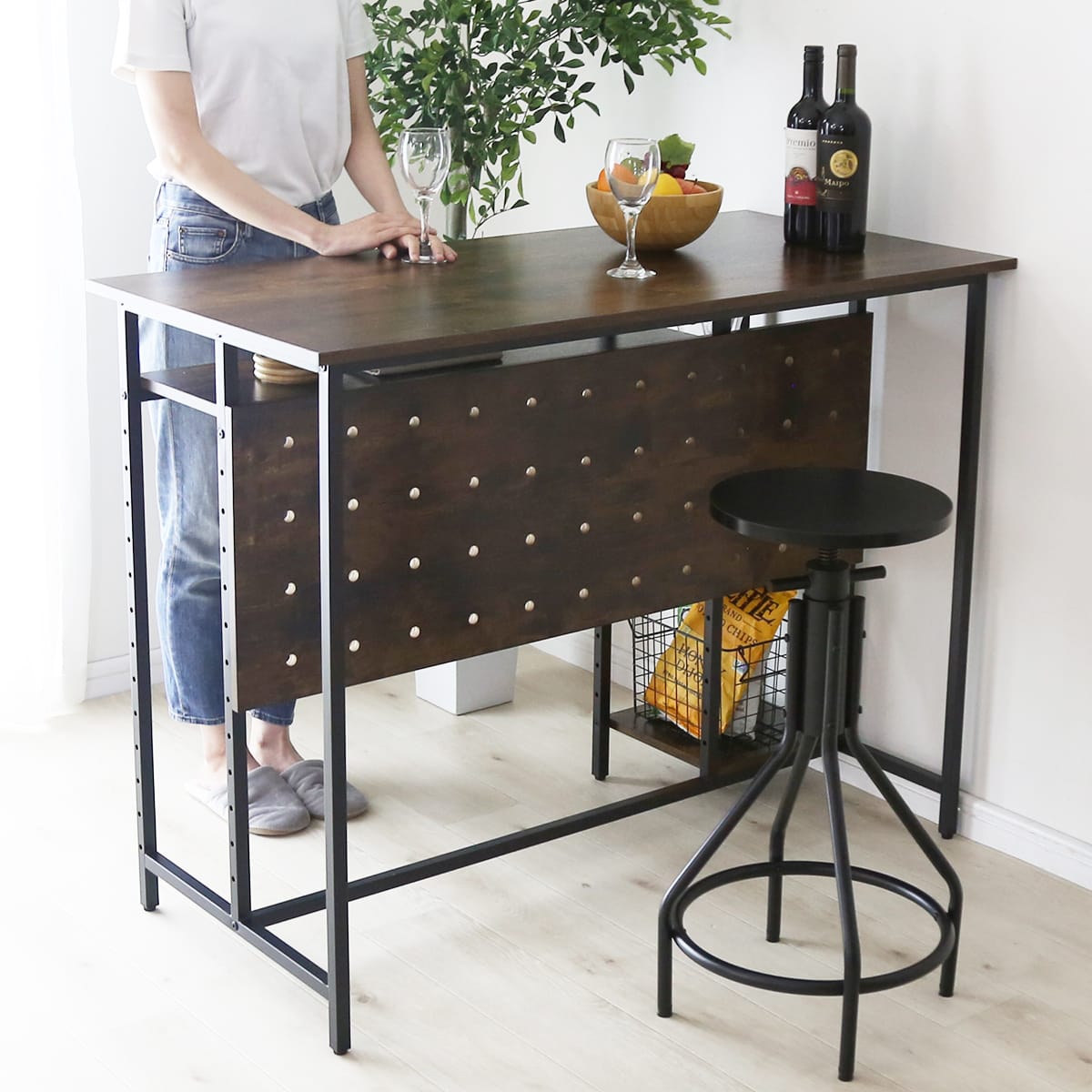 仕事や勉強、家事など、日常のさまざまなシーンで活躍するこちらのデスクは、立って作業したいときも、カウンターチェアやスツールに座って作業したいときも使える仕様です。長時間座りっぱなしを避けたい方には立ち作業スタイルが快適で、集中力を高める効果も期待できます。一方で、リラックスして作業や食事を楽しみたい場合は、椅子を合わせて使用することでカフェのような雰囲気を演出。特に一人暮らしのお部屋では、省スペースながらも快適で機能的なインテリアとして重宝します。