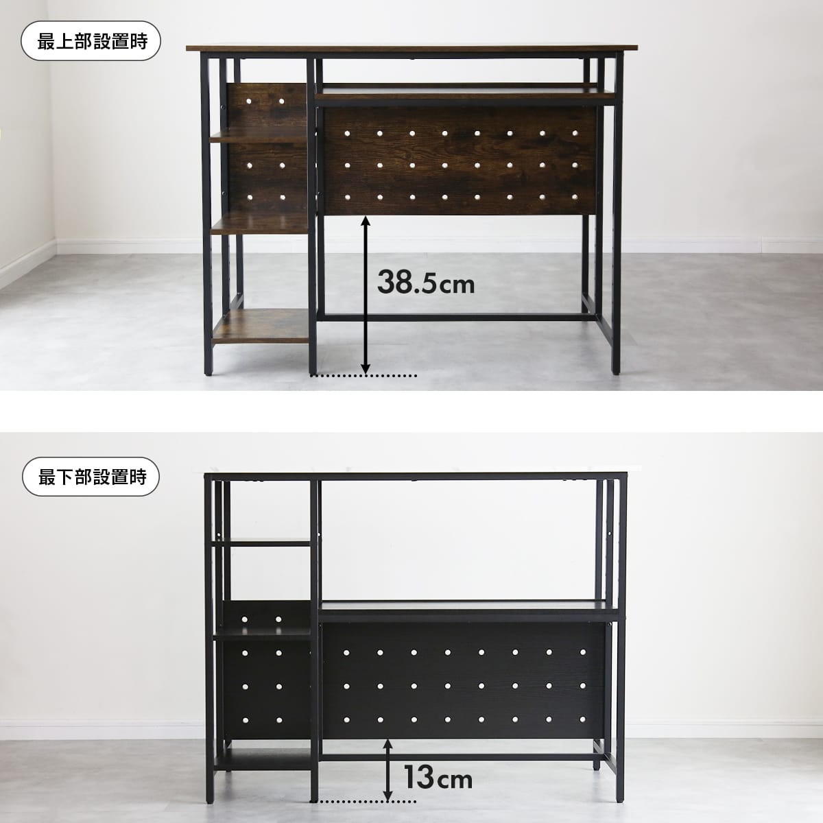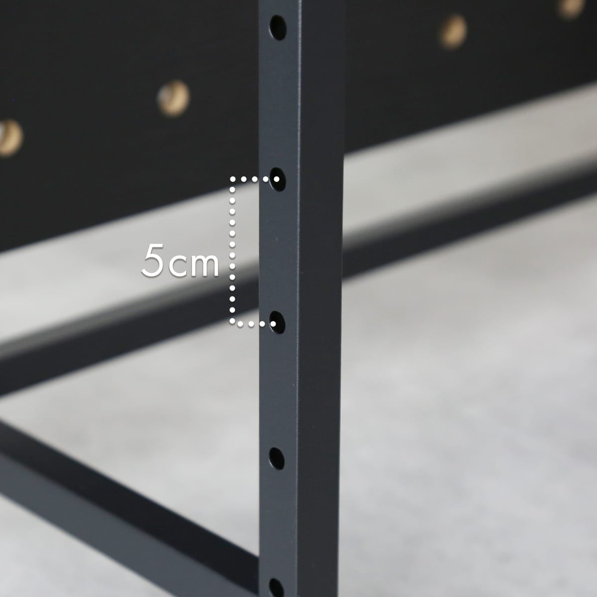 本商品の魅力のひとつが、ボードをお好みの高さに設置できる点です。シンプルな構造ながらも、ナチュラルで落ち着いた雰囲気を演出できるため、リビングや私室に置いても違和感がありません。デザインは、シンプルで落ち着きのあるブラックとナチュラルな木目調、モダンな雰囲気を演出するブラックと大理石調の2種類をご用意。どんなインテリアにも馴染みやすく、インテリアショップで見かけるようなスタイリッシュな印象をお部屋にもたらします。
