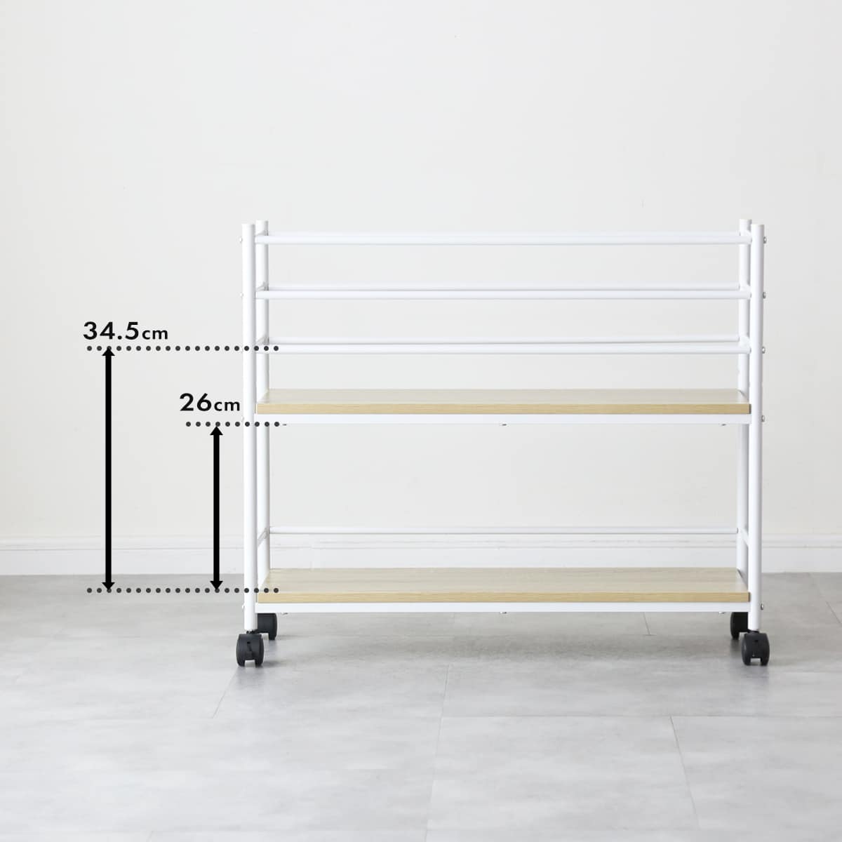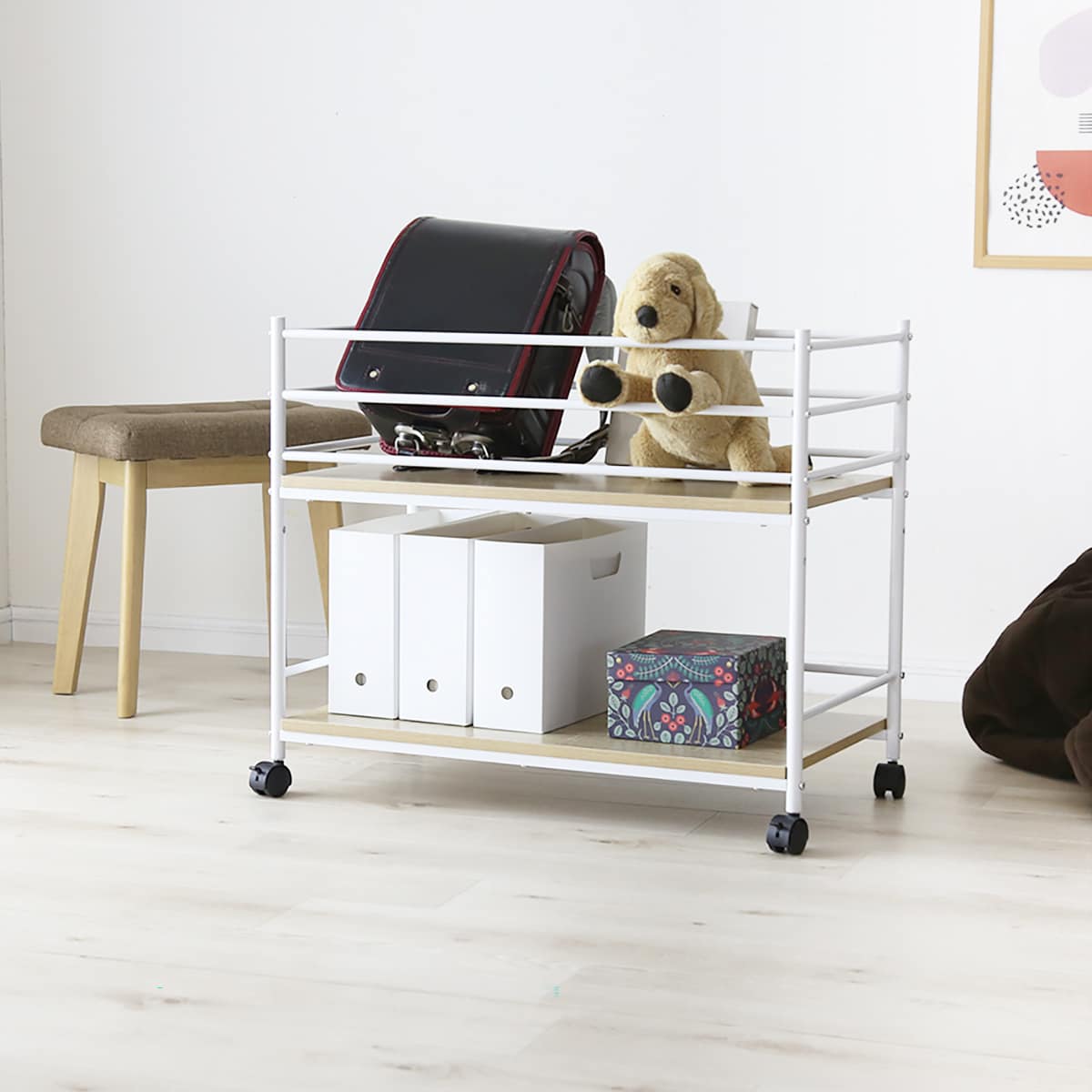 収納するものに合わせて棚板の位置を3段階で調整できる棚板を採用。子どものランドセルや教科書を収納したり、一人暮らし女子のファッション小物をディスプレイしたりと、使い方はあなた次第。リビングや寝室、洗面所、玄関など、どの部屋でも整理収納をサポートします。日常生活をよりスマートに、おしゃれに整える高さ調整可能ワゴンです。