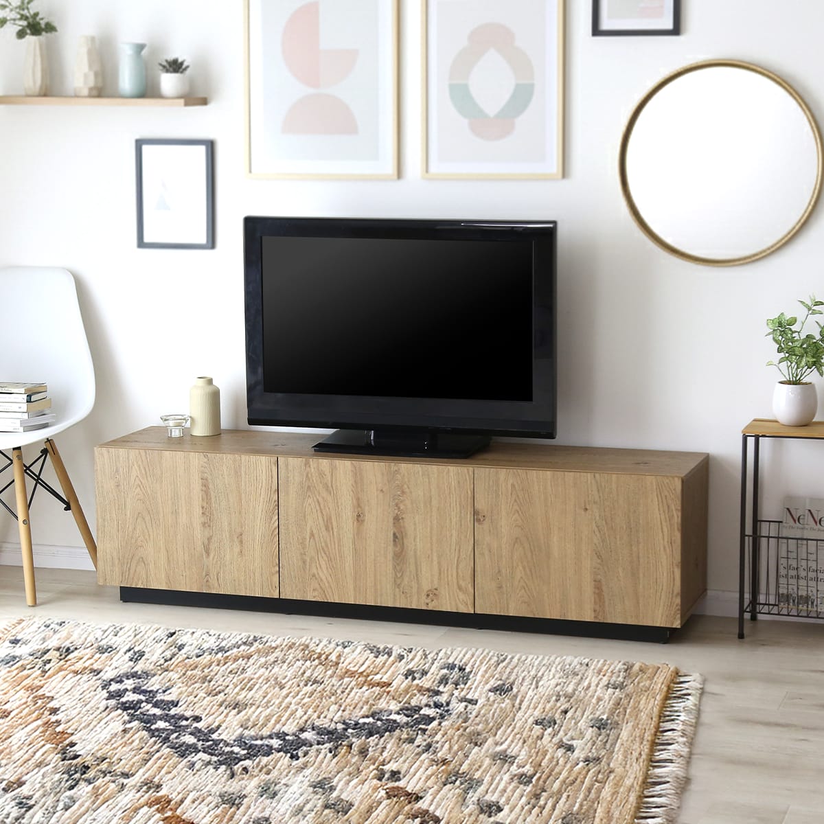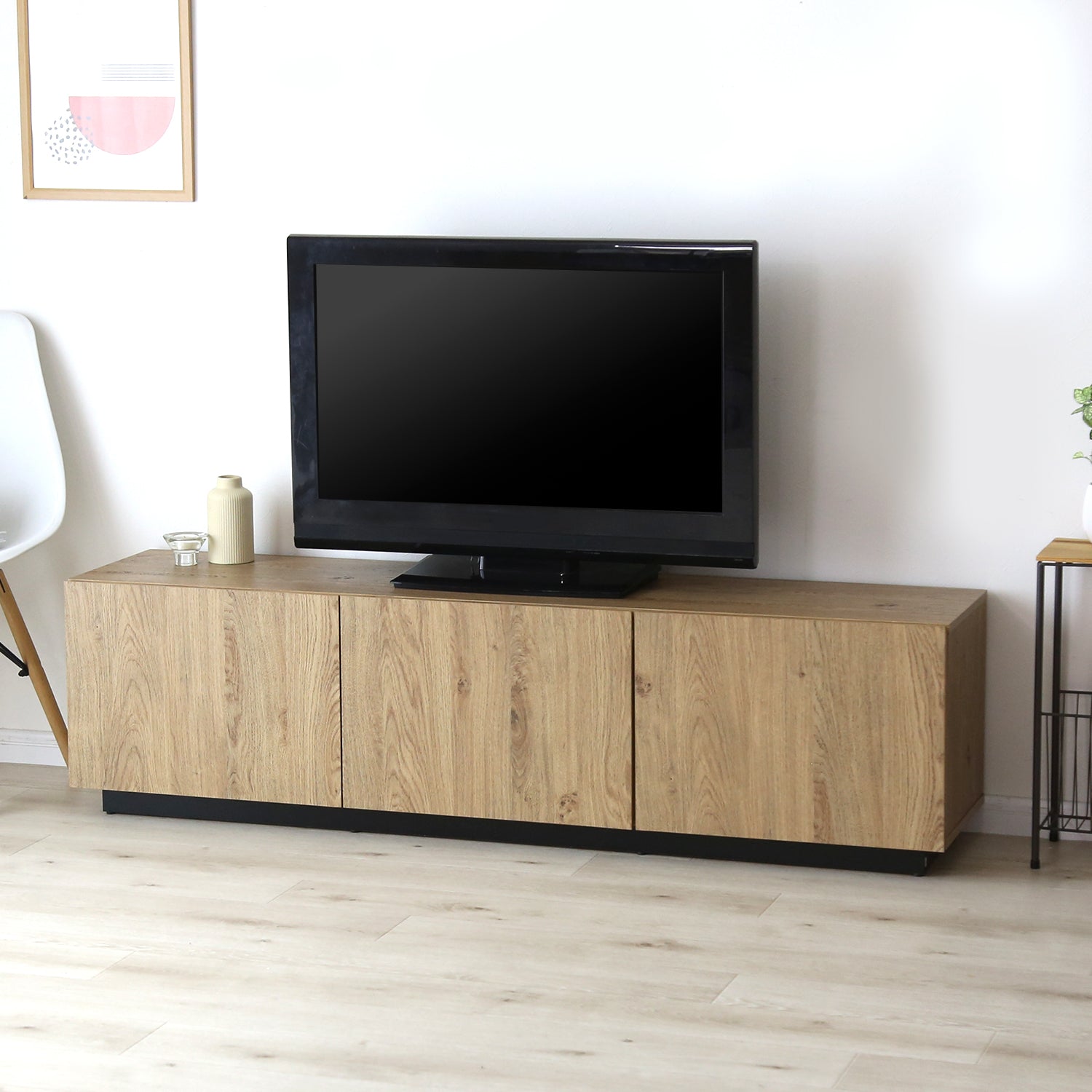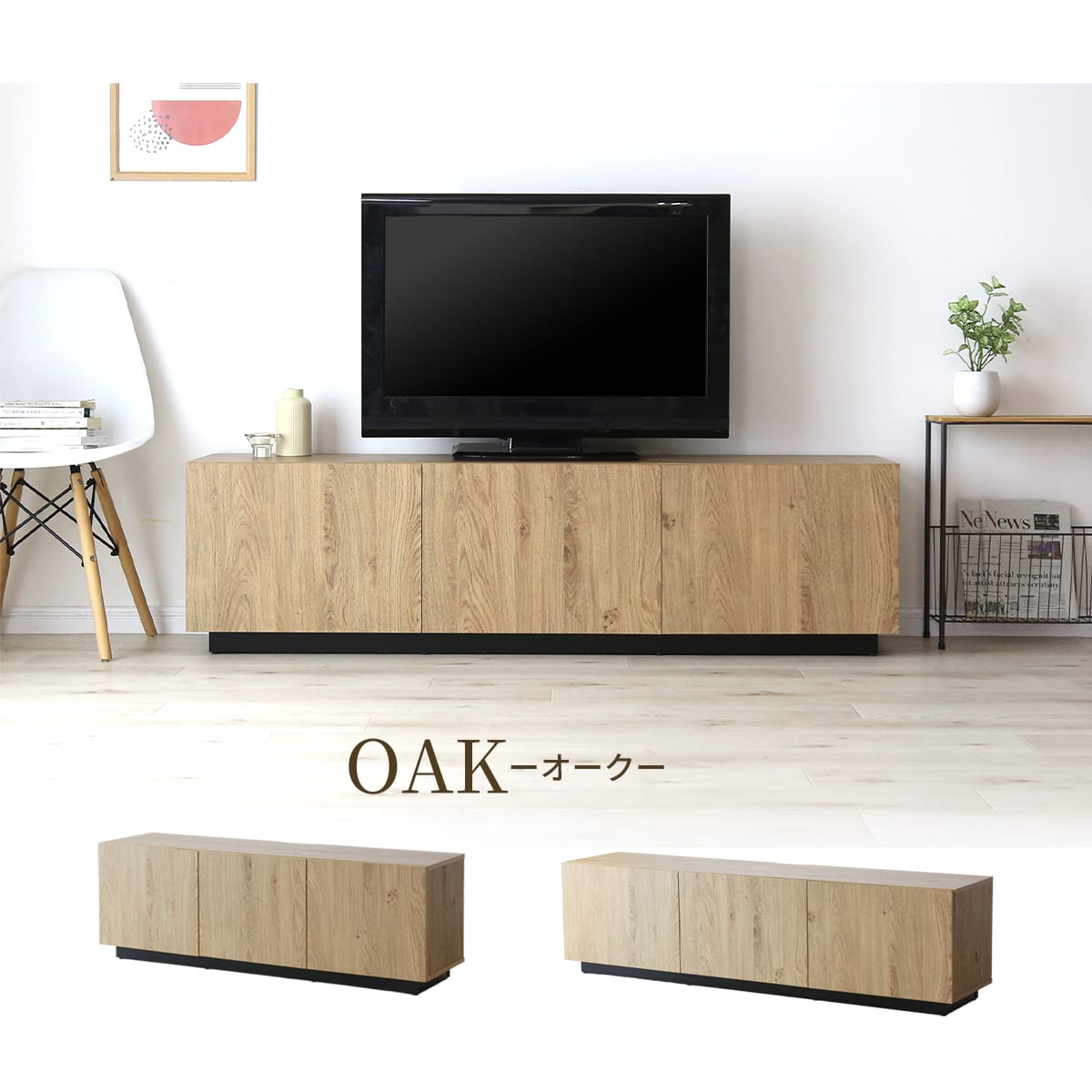 幅120cm・幅150cmの2サイズ、ウォルナットとオークの2色から選べるシンプルなテレビボード。リアルな木目調仕上げで、お部屋になじみやすいデザインです。無駄のないフォルムと取っ手のないフラット扉が魅力です。天板はディスプレイ台としても実用的に使え、植物・雑貨・家電などを置いても映える仕上がり。安定感のある台脚構造と横揺れ防止器具で耐荷重面も安心。シリーズ家具のキャビネットと合わせれば、空間に統一感を作ることができます。