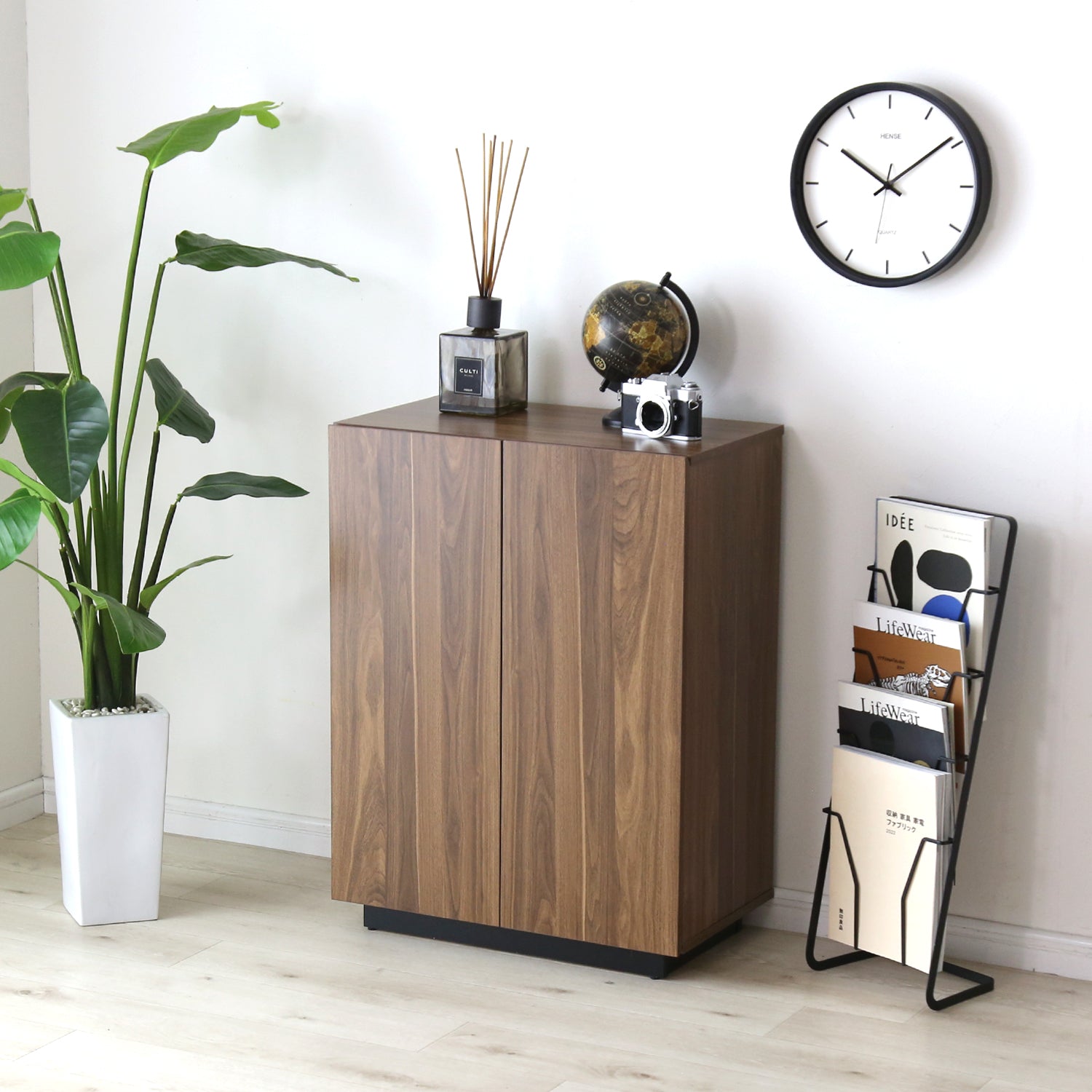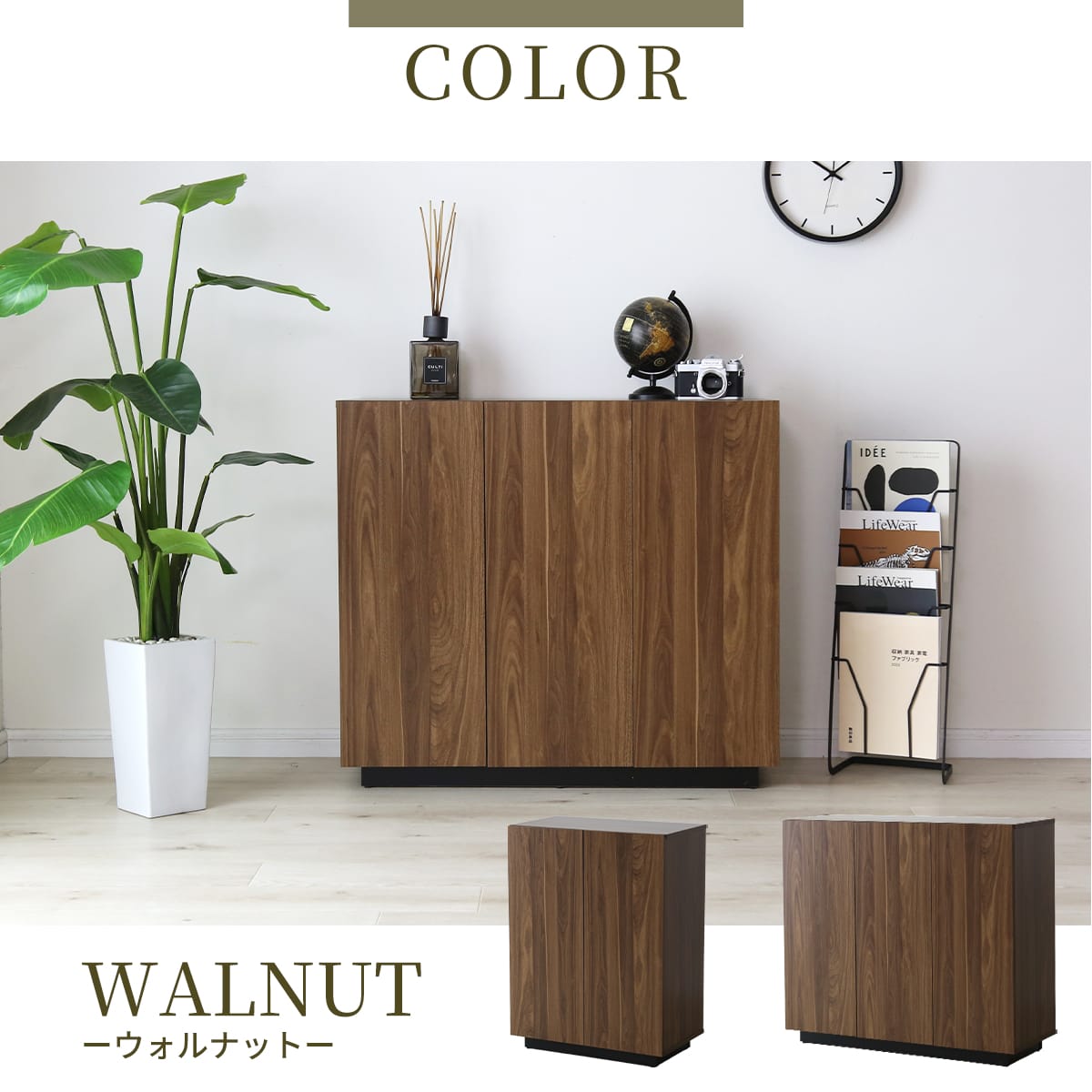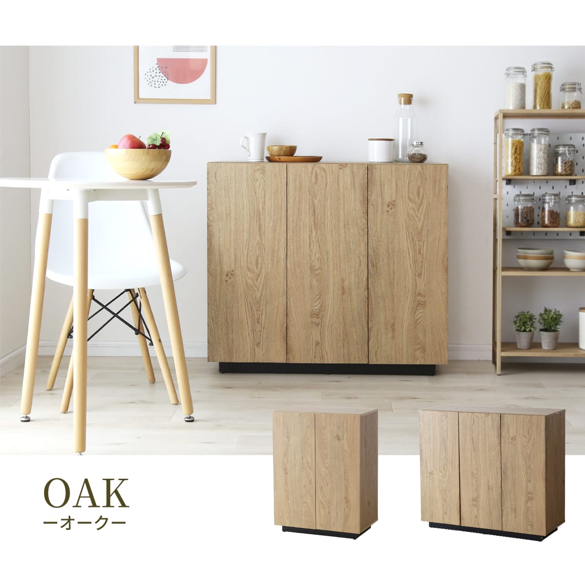 幅60cm・幅90cmの2サイズ、ウォルナットとオークの2色から選べるシンプルキャビネット。リアルな木目調仕上げで、リビングボードやキッチン収納としても使いやすいデザインです。無駄のないフォルムと取っ手のないフラット扉が、生活感を隠しながら収納力をしっかり確保。天板はディスプレイ台としても実用的に使え、植物・雑貨・家電などを置いても映える仕上がり。安定感のある台脚構造と横揺れ防止器具で耐荷重面も安心。シリーズ家具のテレビボードと合わせれば、空間に統一感を作ることができます。省スペースにも置けるスリムさで、リビング・キッチン・玄関・寝室など家中で活躍するコンパクトキャビネットです。