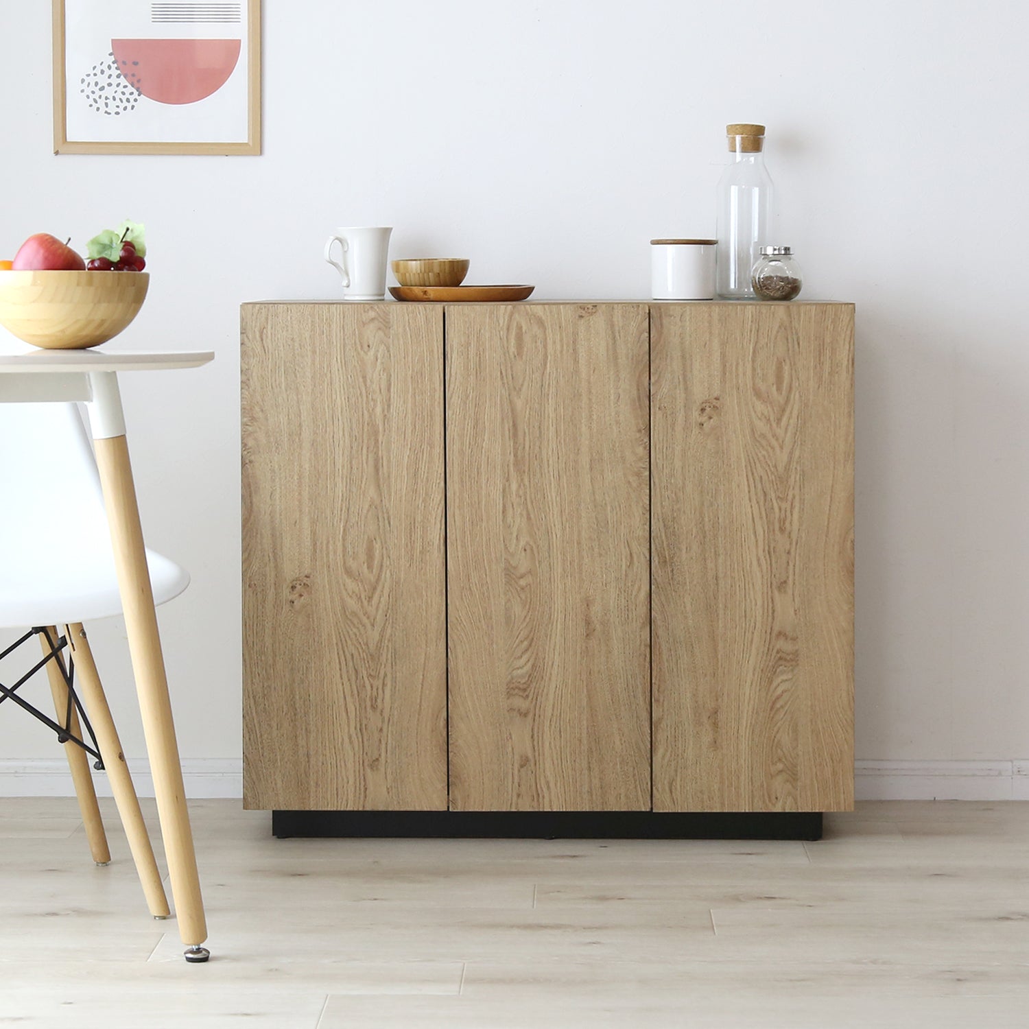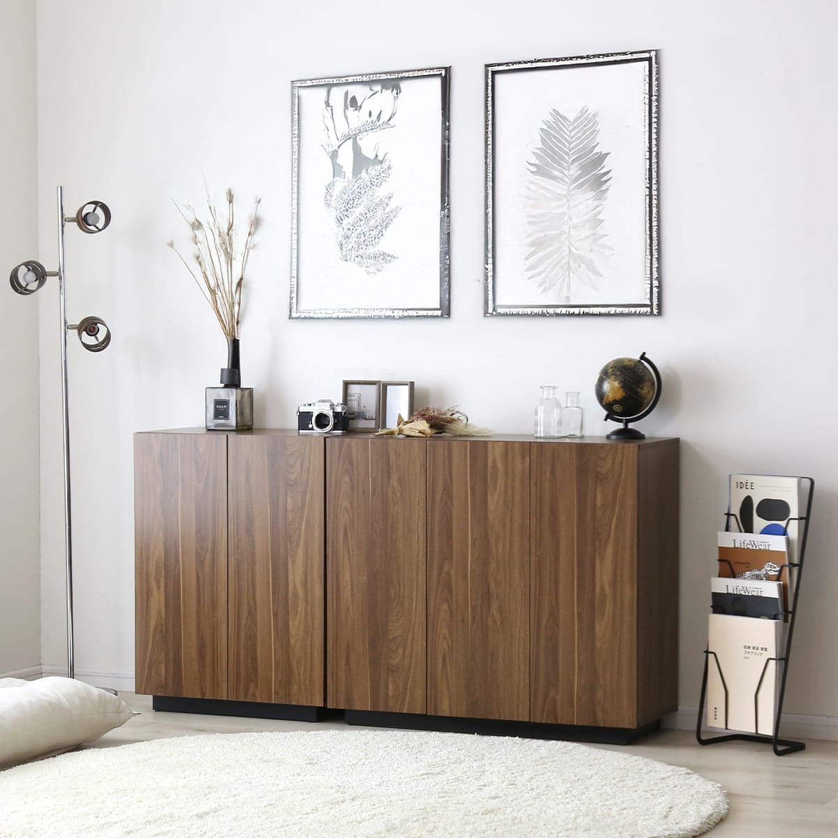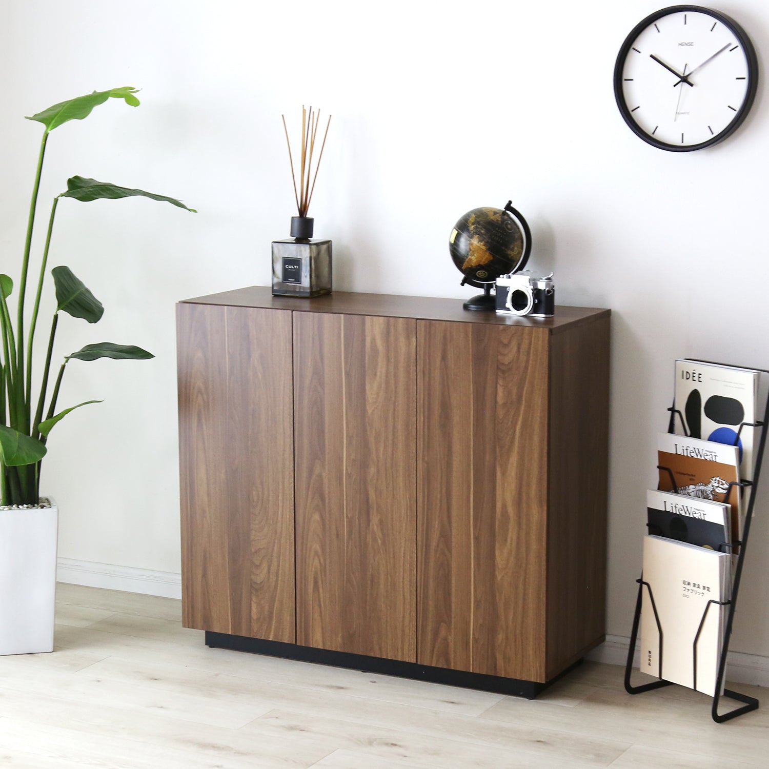 幅60cm・幅90cmの2サイズ、ウォルナットとオークの2色から選べるシンプルキャビネット。リアルな木目調仕上げで、リビングボードやキッチン収納としても使いやすいデザインです。無駄のないフォルムと取っ手のないフラット扉が、生活感を隠しながら収納力をしっかり確保。天板はディスプレイ台としても実用的に使え、植物・雑貨・家電などを置いても映える仕上がり。安定感のある台脚構造と横揺れ防止器具で耐荷重面も安心。シリーズ家具のテレビボードと合わせれば、空間に統一感を作ることができます。省スペースにも置けるスリムさで、リビング・キッチン・玄関・寝室など家中で活躍するコンパクトキャビネットです。