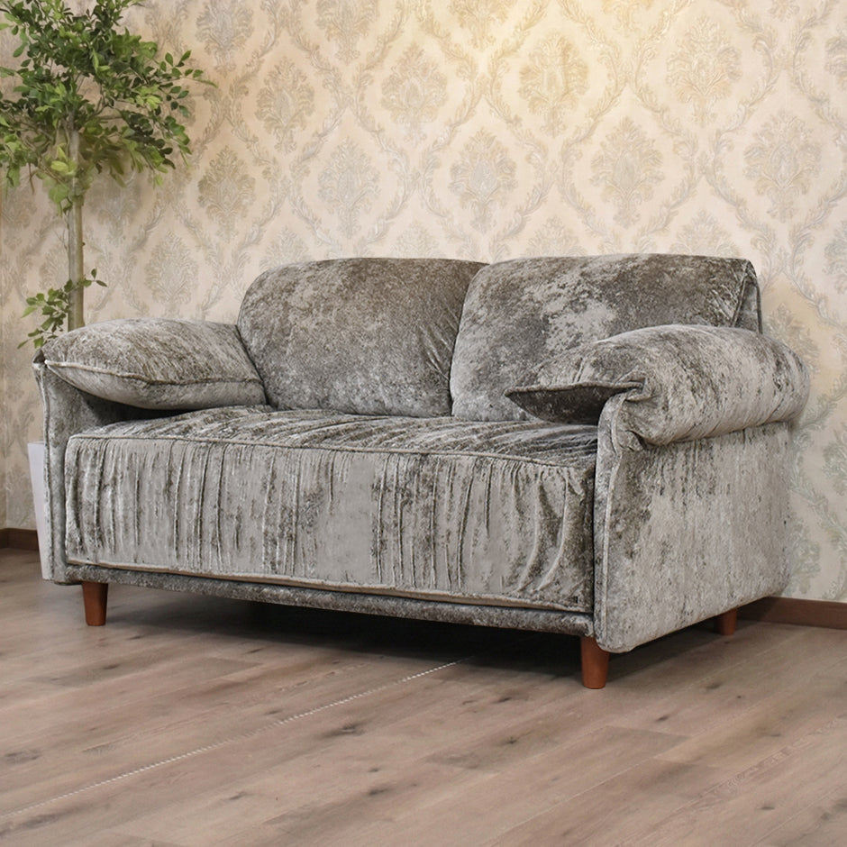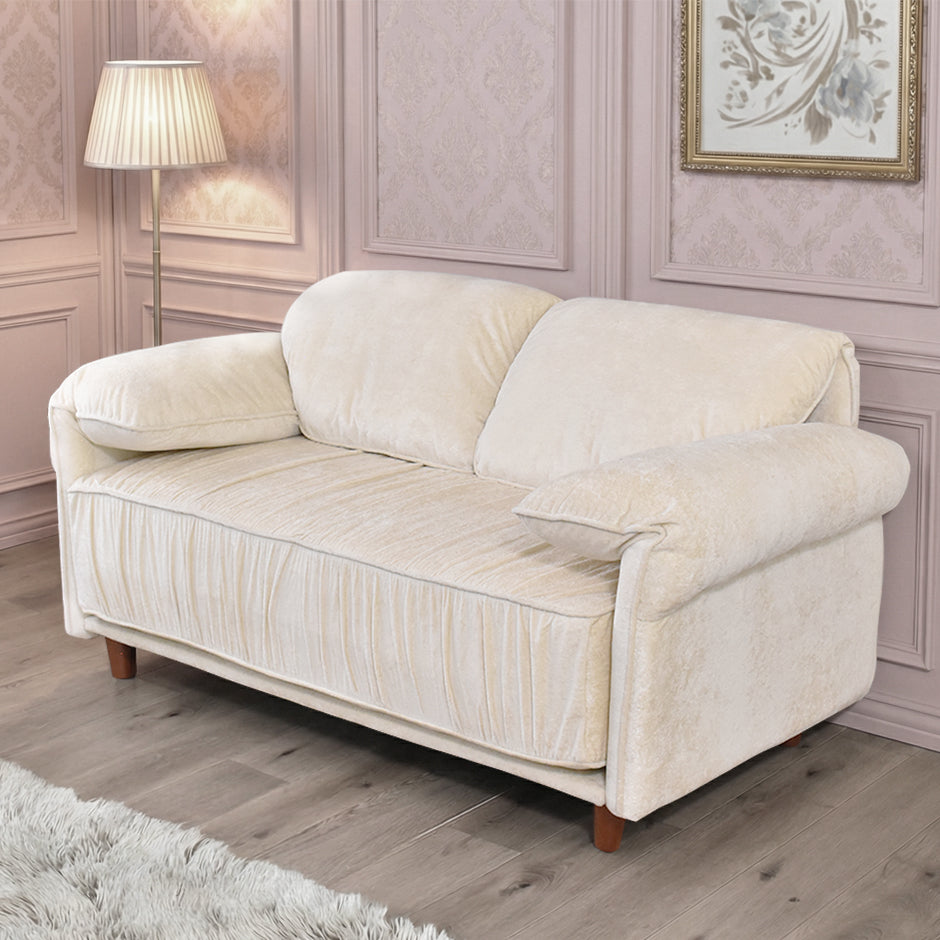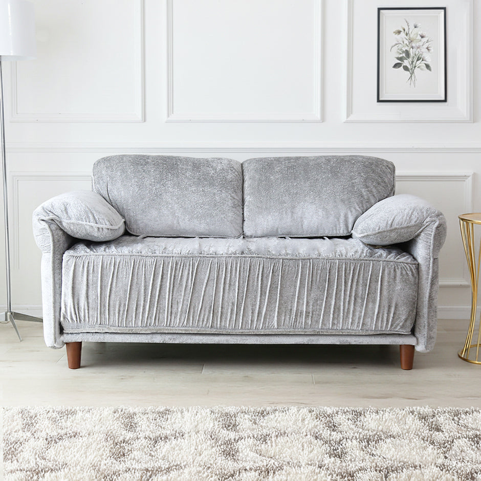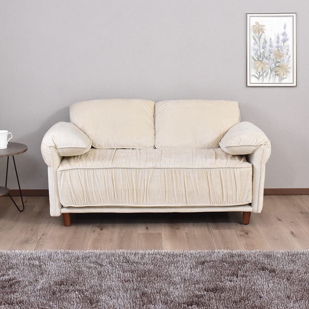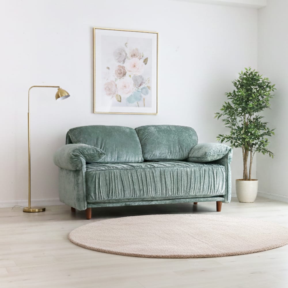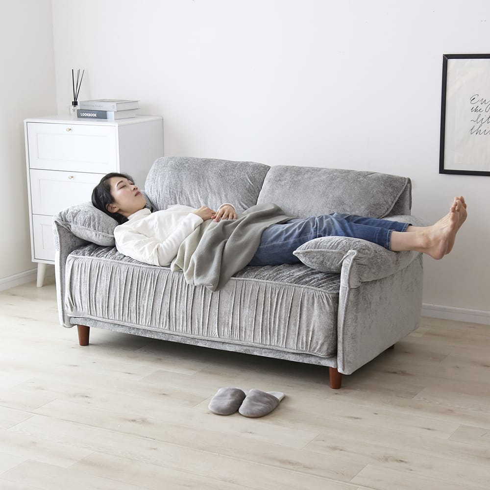 張地には、上品な光沢感が特徴のベルベット調生地を使用しております。光の当たり方によって表情が変わり、シンプルなお部屋でも一気にエレガントで高級感のある雰囲気を演出いたします。なめらかな触り心地のため、座った瞬間に心地よさを実感していただけ、思わず長くくつろぎたくなる仕上がりです。ソファとしての存在感はありつつ、主張しすぎないデザインのため、リビングはもちろん私室や寝室にも合わせやすくなっております。おしゃれさと落ち着きを両立した、ワンランク上の2Pソファをお探しの方におすすめです。