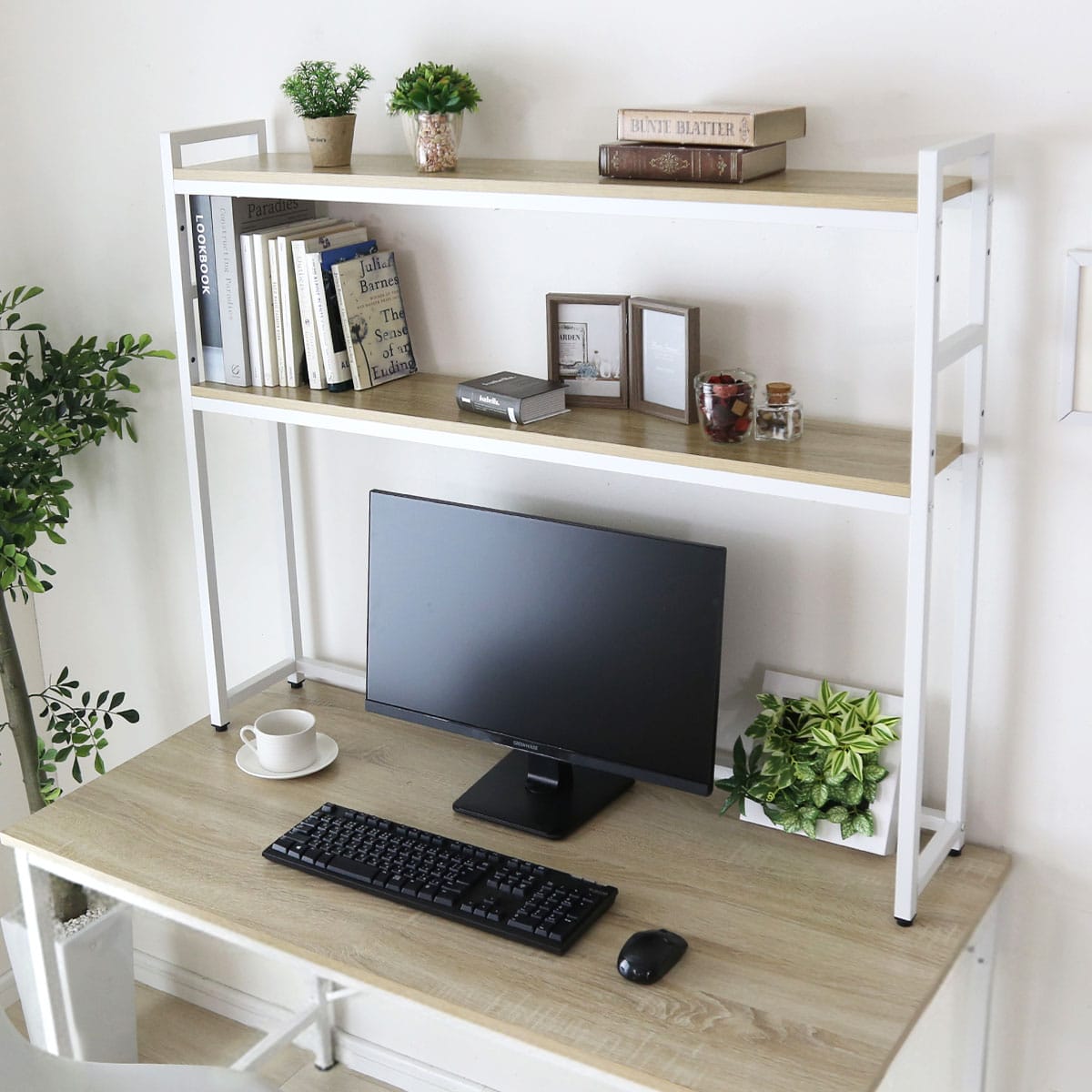 棚板は耐荷重20kgの安心設計で、周辺機器や書籍、収納ボックスもしっかり支えます。たわみにくく安定感のある使い心地を実現。奥行20cmのスリム設計のため、圧迫感を抑えながら収納力を確保し、デスク上をすっきり整えます。